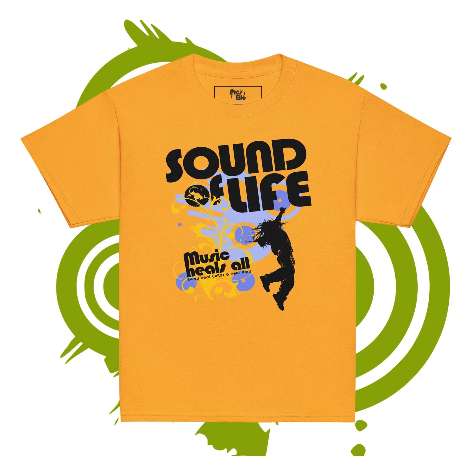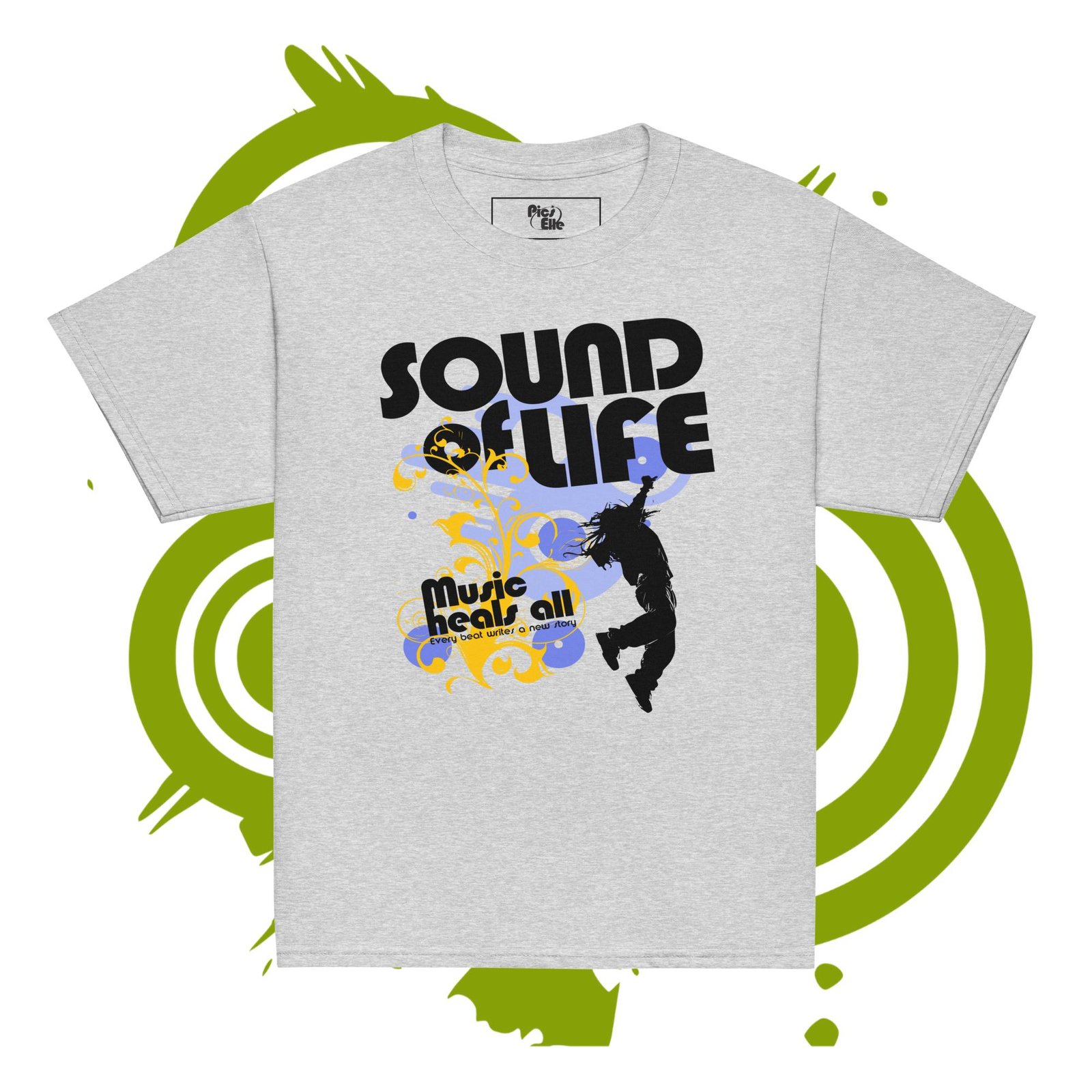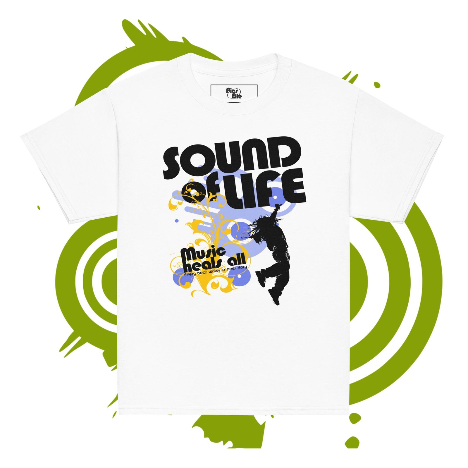 The Youth classic tee – Sound of life – Frutiger Metro graffiti features a striking violet and yellow design with a dynamic silhouette. Inspired by Y2K street art, this Frutiger Metro shirt adds color, movement, and energy to teen streetwear.