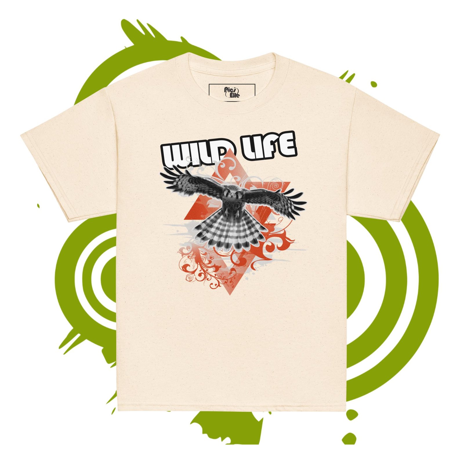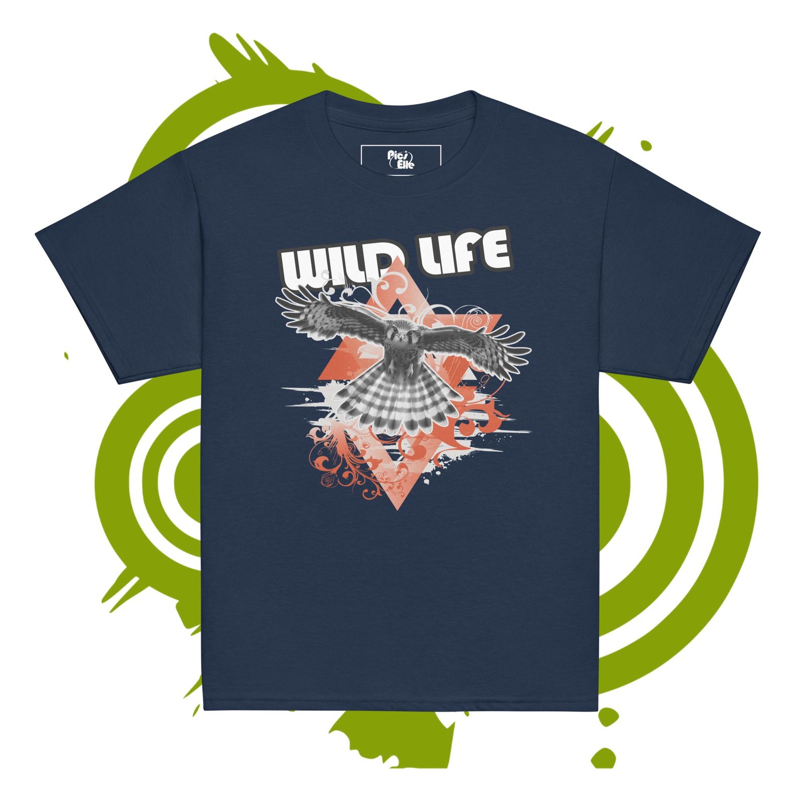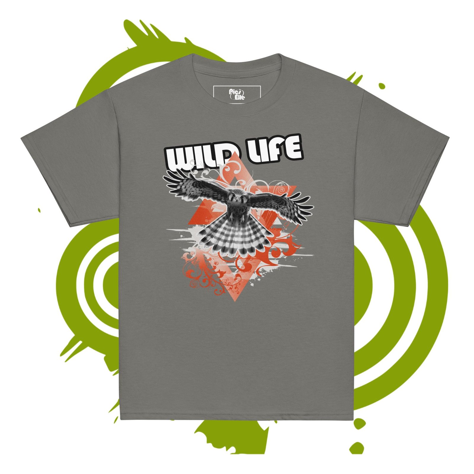The Youth classic tee – Wild Life falcon – orange geometric graffiti blends wildlife inspiration with a bold streetwear edge. Featuring a falcon graphic over an abstract orange graffiti background with vector garden ornaments, this wild life falcon t-shirt stands out with style.