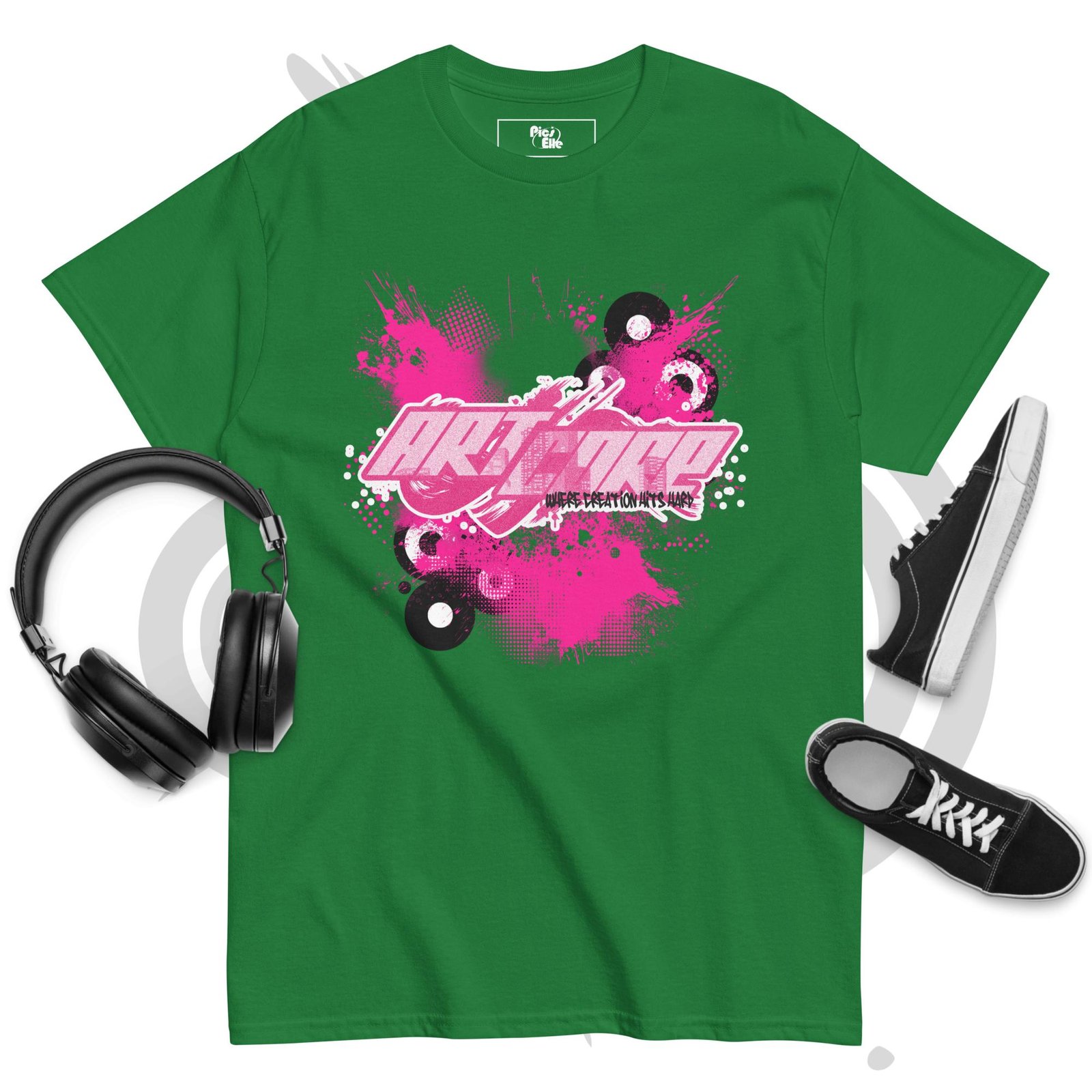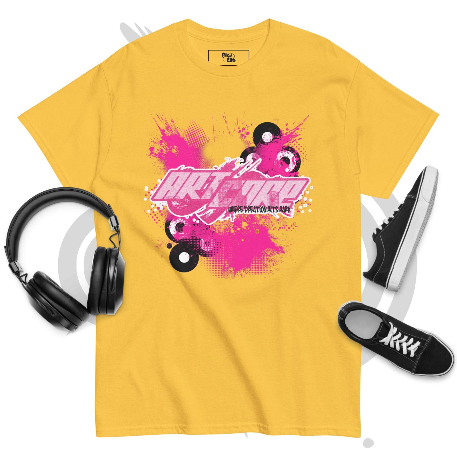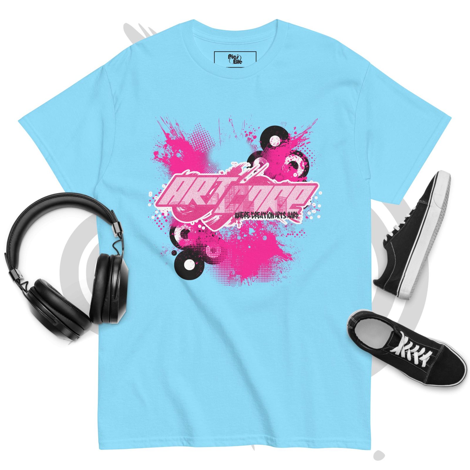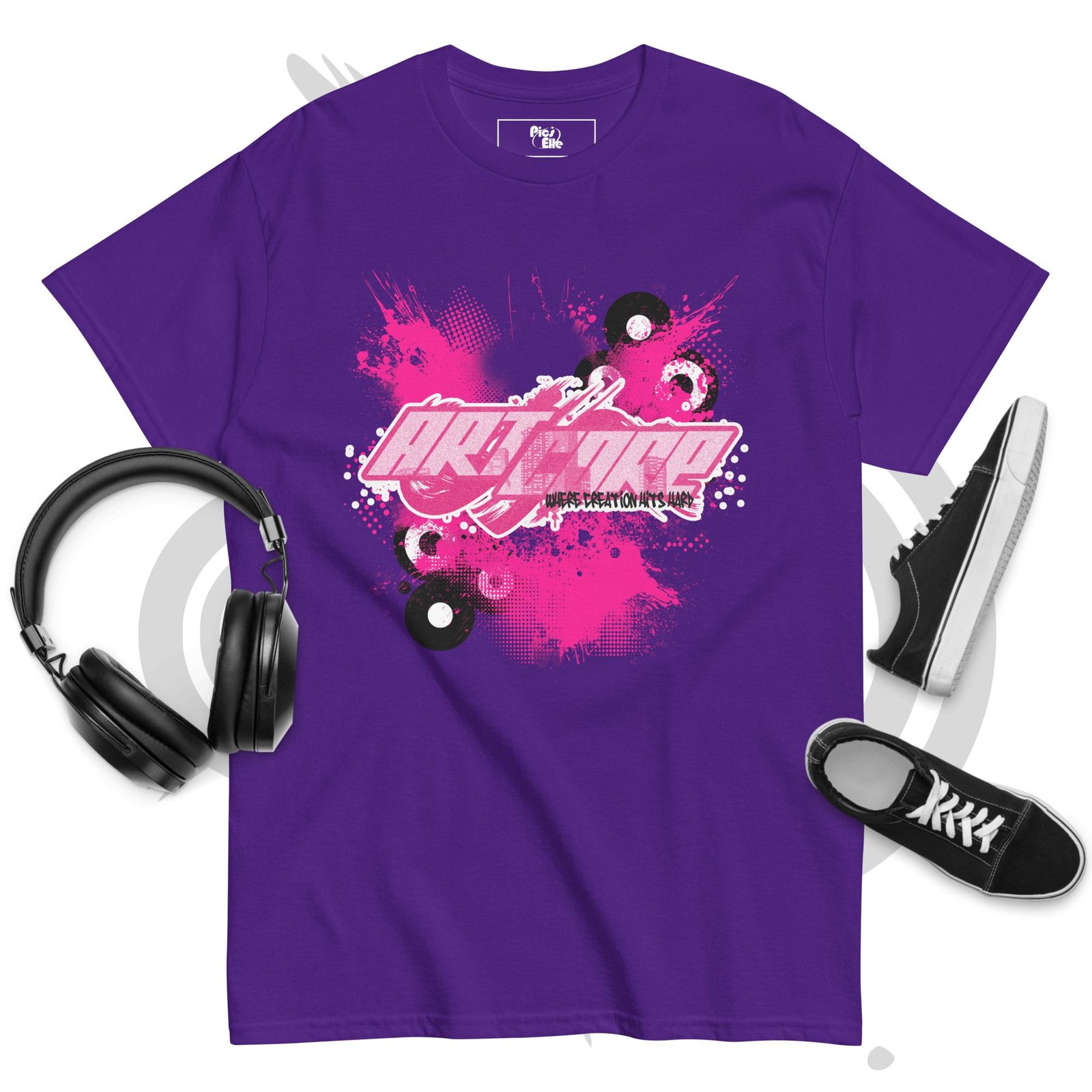 Featuring dynamic splashes, vinyl records, and intense pink highlights, this tee is perfect for those who love early-2000s vibes, underground creativity, and modern streetwear fashion. Soft, lightweight, and comfortable for everyday wear, it’s ideal for artists, skaters, music lovers, and anyone who embraces expressive graphic style.