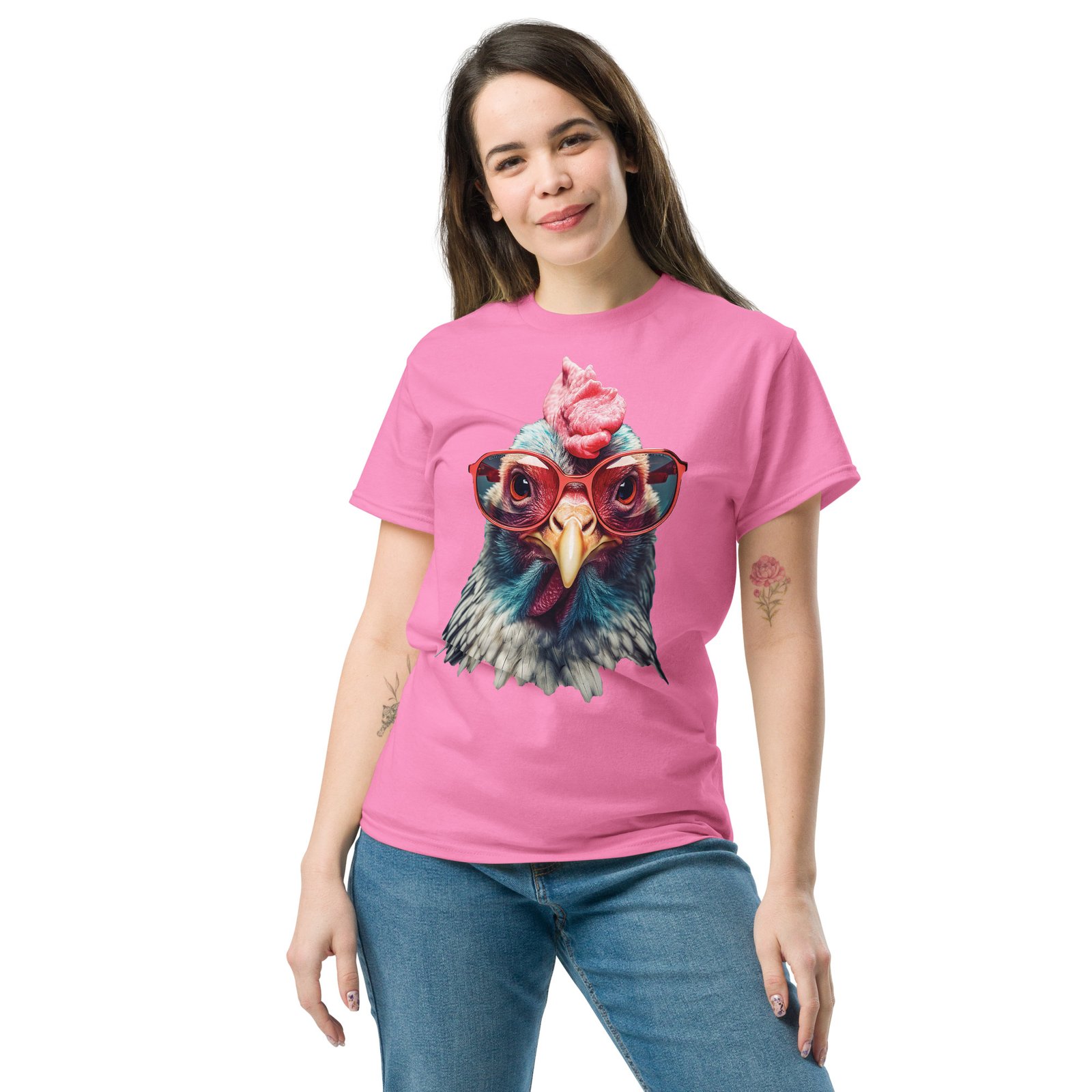 The Unisex Classic Tee – Funny Chicken with Glasses adds humor and personality to everyday fashion, making it a fun piece that stands out wherever you go.