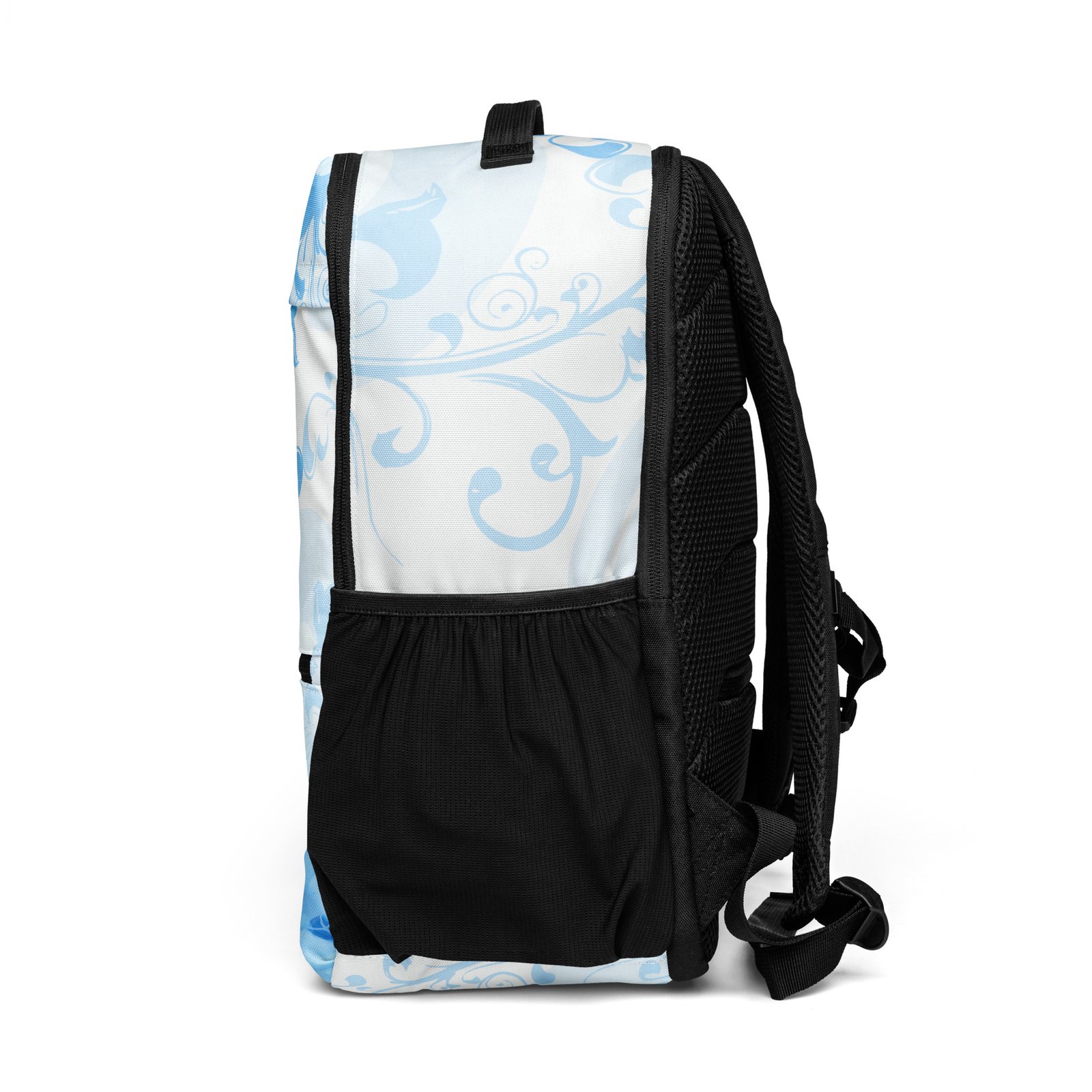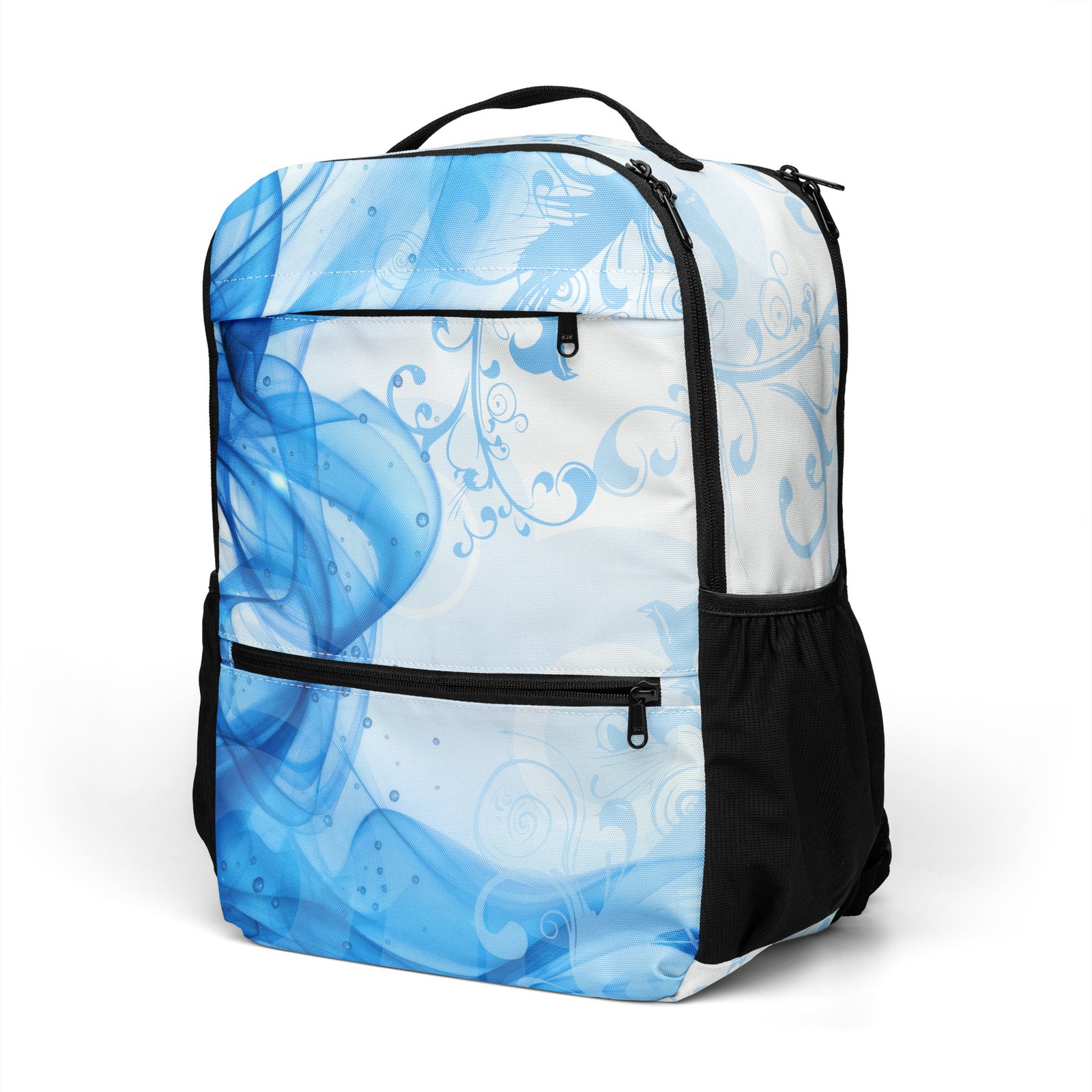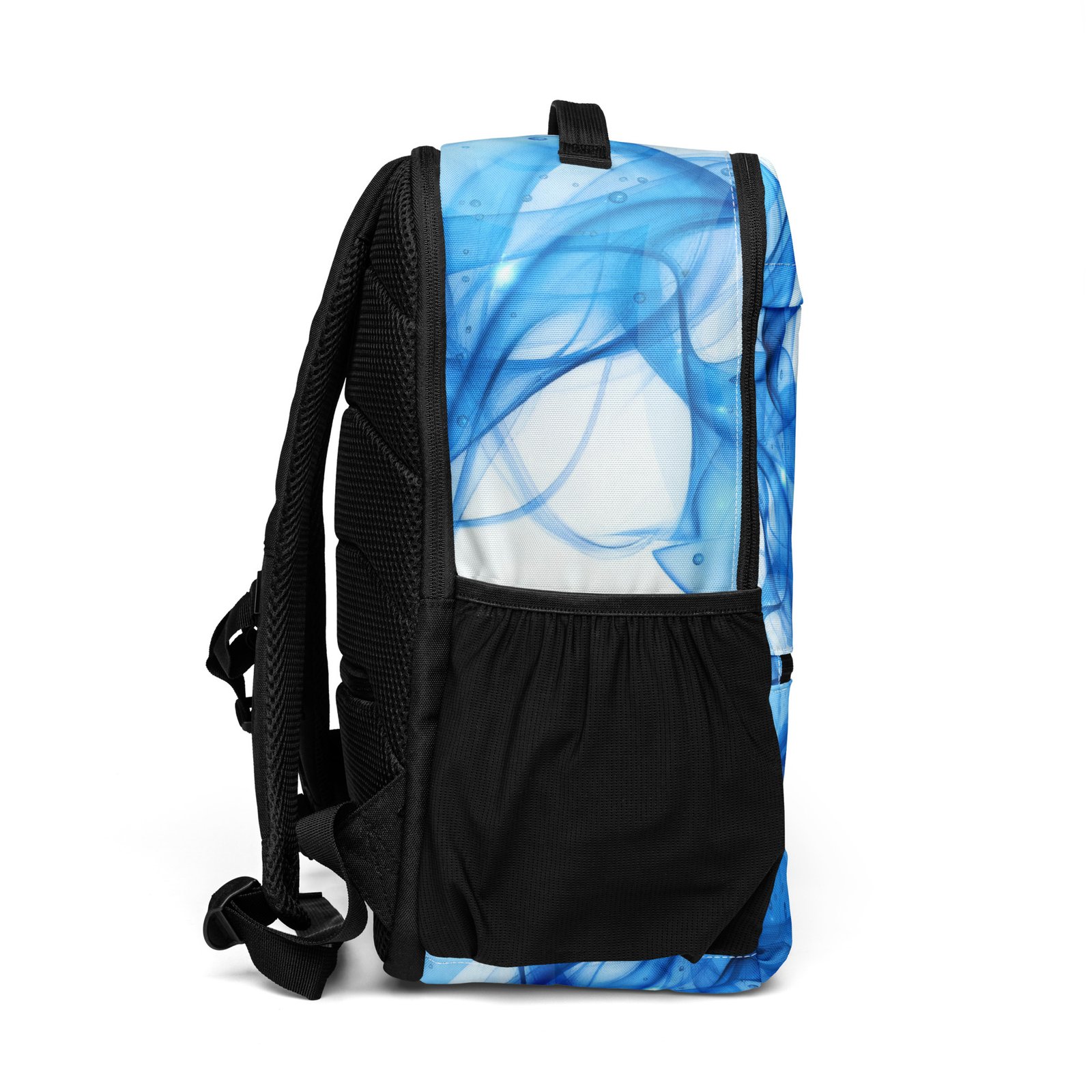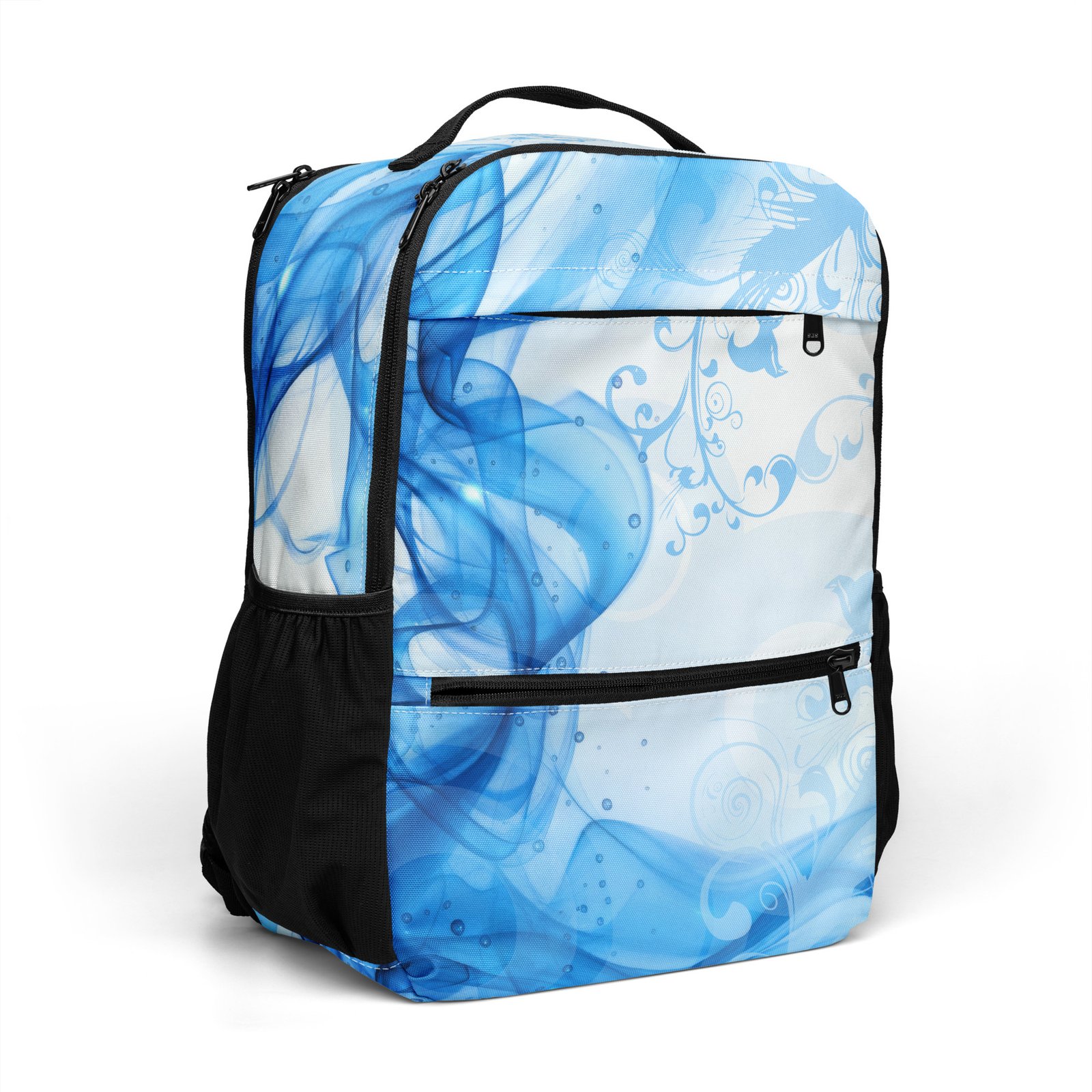 Make a statement with this unique blue backpack designed in a modern abstract feminine style. Inspired by the nostalgic Frutiger Aero aesthetic and vector garden elements, this bag blends soft curves, organic shapes, and vibrant tones into a fresh Y2K-inspired look.